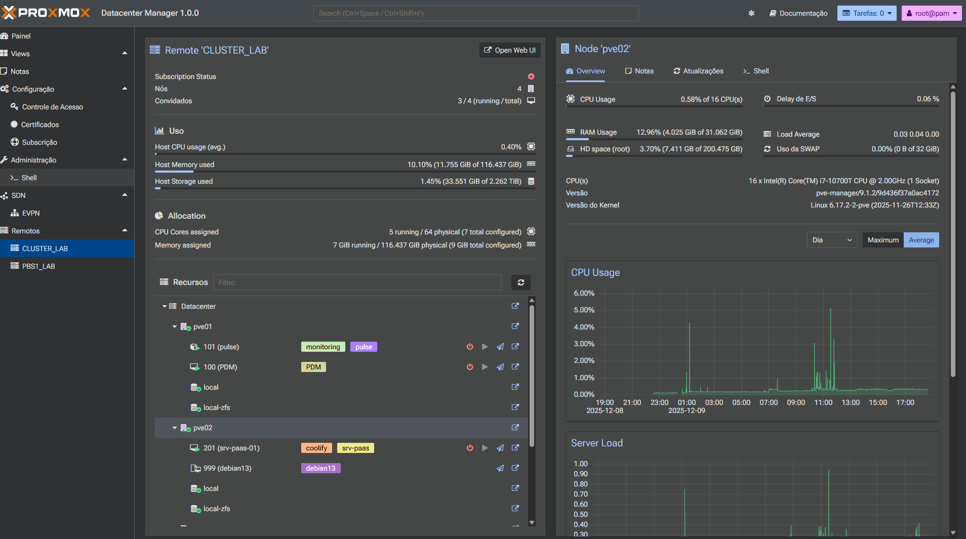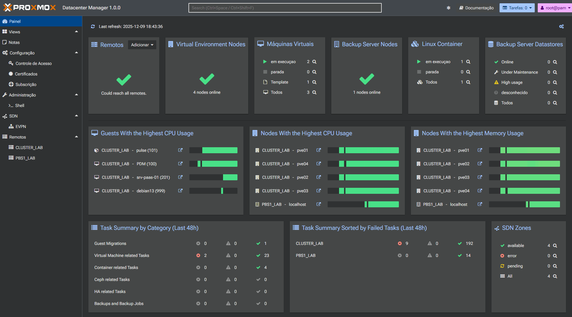 Aqui está a peça que faltava para convencer os grandes gestores. Durante anos, a crítica era: “O Proxmox é ótimo, mas gerenciar 50 clusters separados é um pesadelo”. O Proxmox Datacenter Manager 1.0 resolve isso com maestria.